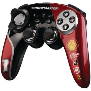 2.4 GHZ WIRELESS CONTROLLER. EXCLUSIVE & NUMBERED. METALLISED DESIGN INSPIRED BY THE "MUSETTO" NOSE OF THE 2009 F1 FERRARI RACE CAR. LOWER GRIP FEATURING A FULL PEACH SKIN TEXTURE. DUAL PROGRESSIVE & PROGRAMMABLE TRIGGERS. UNRIVALLED CONTROL. INDEPENDENT & MEASURABLE BRAKING & ACCELERATION. OPTICAL WHEEL WITH AUTO-CENTERING. COMPATIBLE WITH PS3 & PC. FULLY PROGRAMMABLE. MAPPING, PRESET & INTERNAL MEMORY FUNCTIONS. . . .